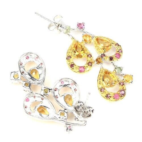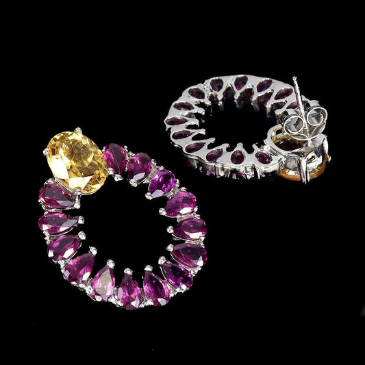 Orecchini piume di pavone rubino citrino zaffiro rodolite