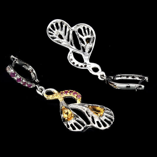 Orecchini piume di pavone rubino citrino