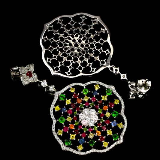 Orecchini di diopside russo, tanzanite, rodolite, smeraldo, zaffiro