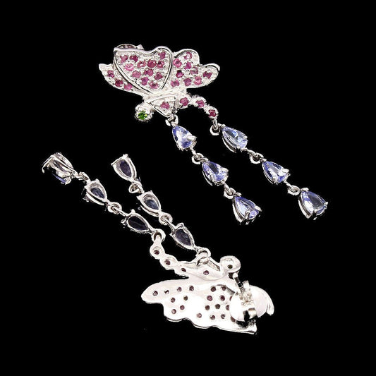 Orecchini farfalla diopside russo rubino tanzanite
