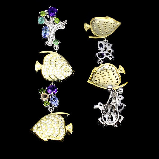 Ciondolo pesce zaffiro tanzanite diopside russo ametista