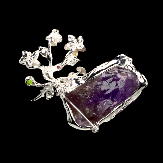 Spilla Ciondolo Ametista Diopside Russo Smeraldo Rodolite