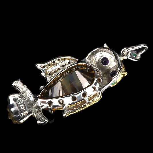 Citrin Amethyst Smaragd Saphir Eule Anhänger