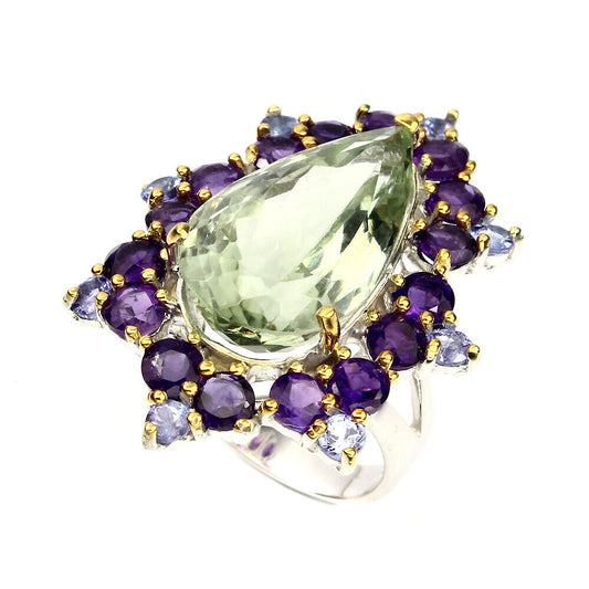 Anello prasiolite ametista tanzanite misura 58