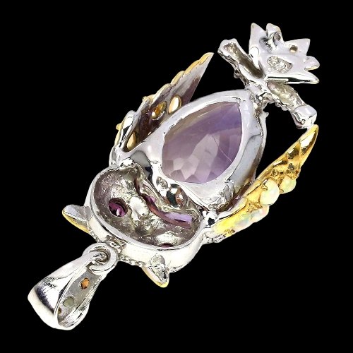 Ciondolo gufo zaffiro rodolite opale ametrino