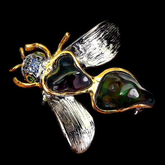 Spilla ciondolo insetto zaffiro diopside russo opale nero