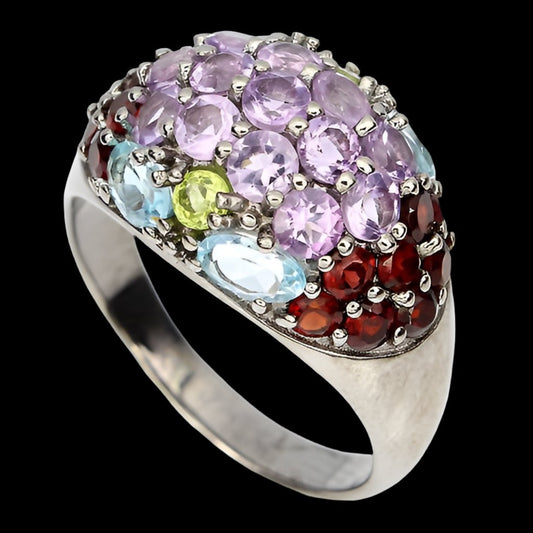 Anello ametista granato peridoto topazio blu cielo misura 54