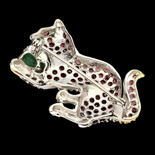 Spilla gatto granato smeraldo