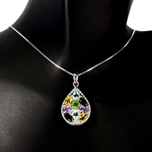 Ciondolo peridoto topazio blu ametista granato citrino con collana