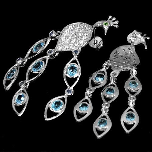 Orecchini Pavone Zaffiro Topazio Blu Cielo