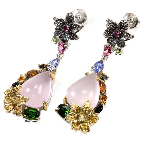 Orecchini diopside russo tormalina tanzanite quarzo rosa
