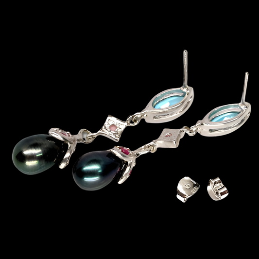 Orecchini Perla Rubino Tsavorite Zaffiro Topazio Bianco