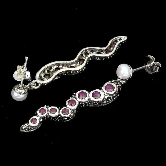 Orecchini serpente rubino perle marcasite