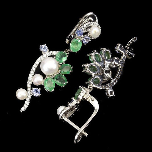 Orecchini smeraldo tanzanite perla