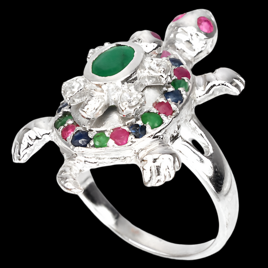 Anello tartaruga smeraldo rubino zaffiro misura 59