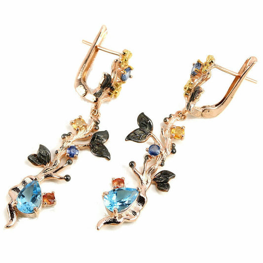 Orecchini zaffiro rodolite topazio blu