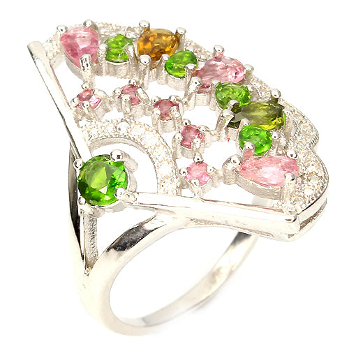 Anello Ventaglio Diopside Russo Tormalina Misura 58