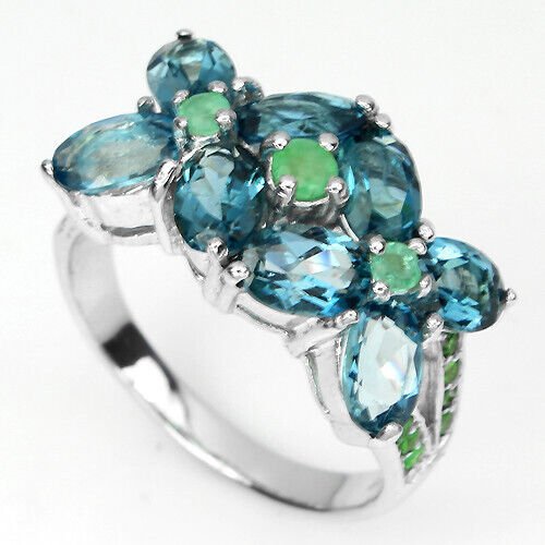 Anello tsavorite smeraldo topazio blu Londra misura 56