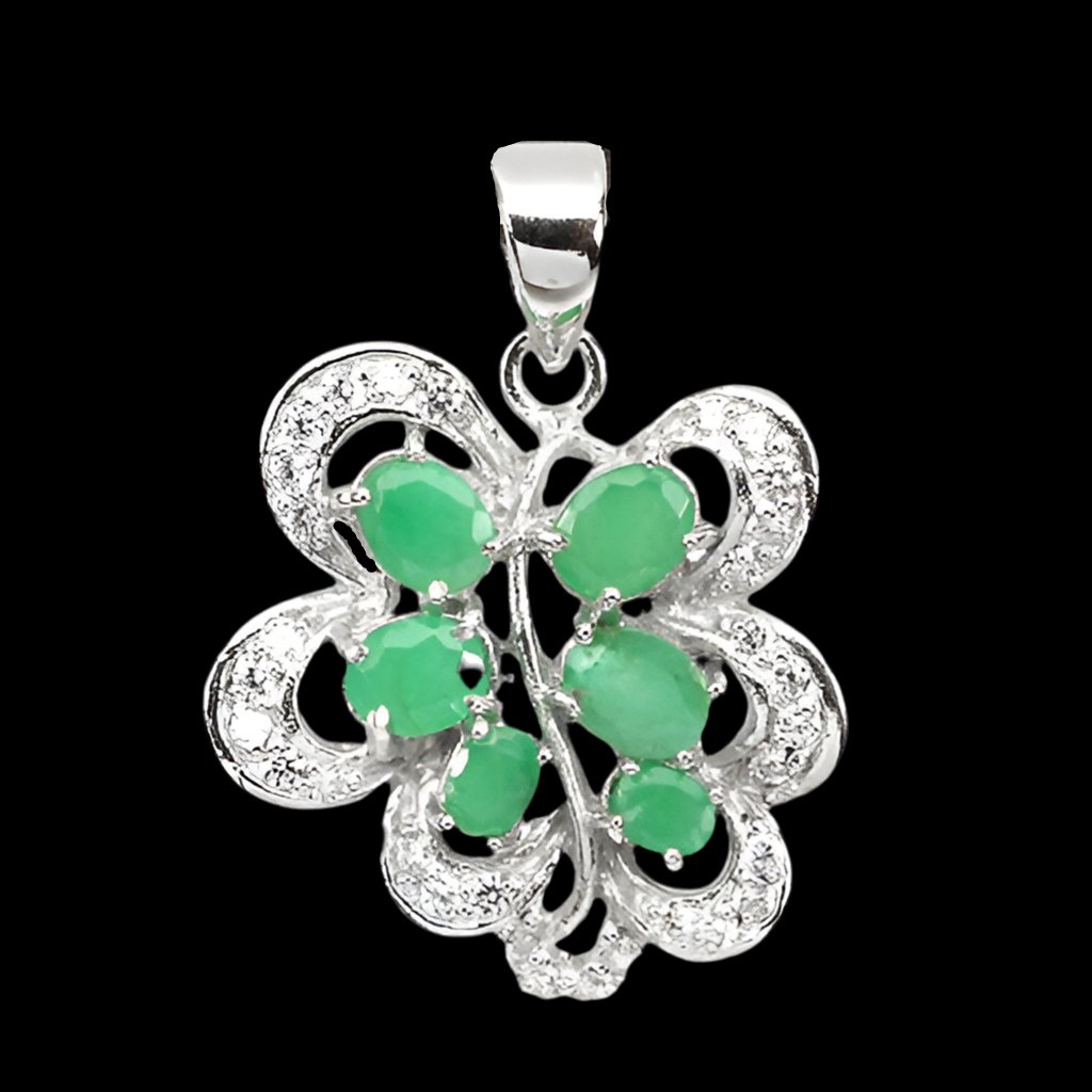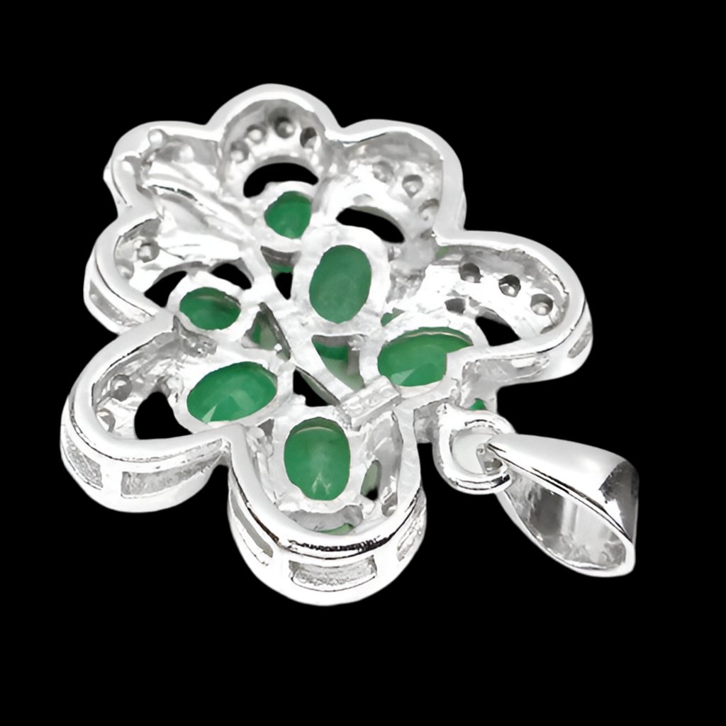 Bellissimo ciondolo con 6 smeraldi e zirconi bianchi incastonati in argento sterling 925 placcato oro bianco 585