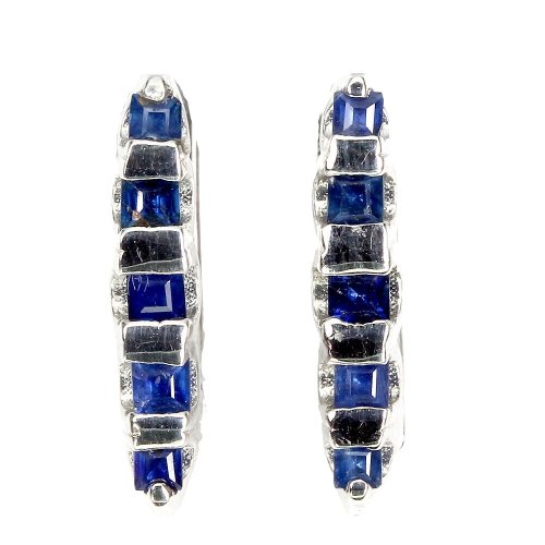 Delicati orecchini con un totale di 10 zaffiri blu a taglio quadrato incastonati in argento sterling 925 585 placcato in oro bianco