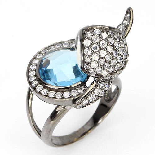 UitverkochtLondon-blauwe topaas uil ring maat 57