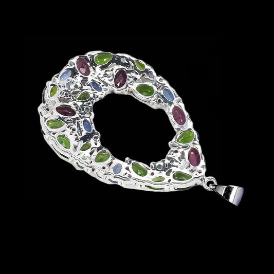 Russische diopsied rhodoliet kyaniet smaragd robijn hanger