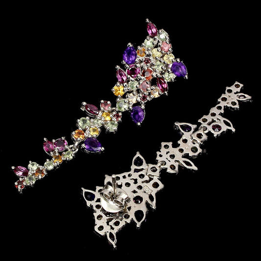 Rhodoliet Russische diopside Citrien Amethist oorbellen