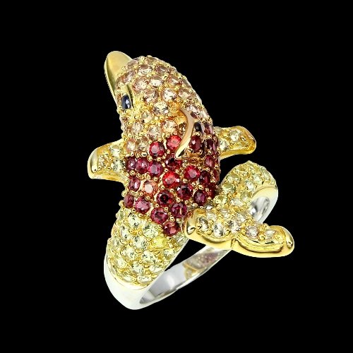 Saffier Diamantgeslepen Dolfijn Ring Maat 57