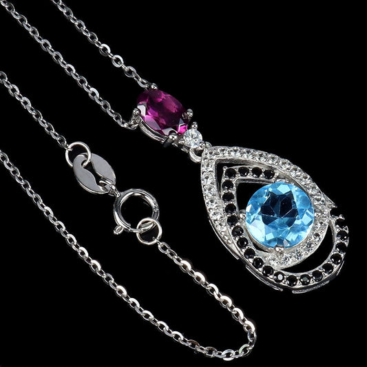 Blauwe Topaas Rhodoliet Witte Topaas Spinel Hanger Met Halsketting