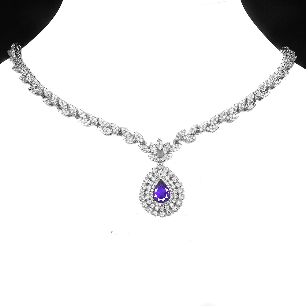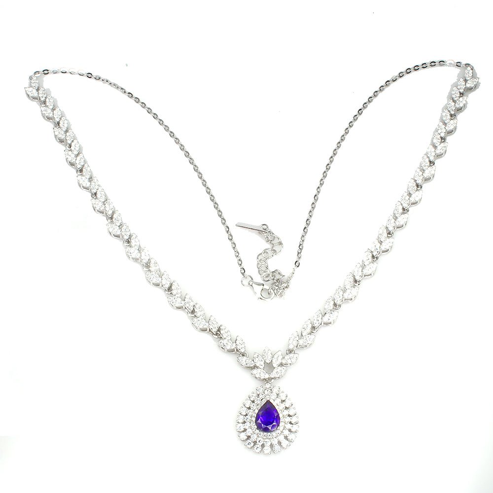 Collier mit einem Amethyst & weißen Zirkonia gefasst in 925 Sterlingsilber 14 Karat Weißgold vergoldet