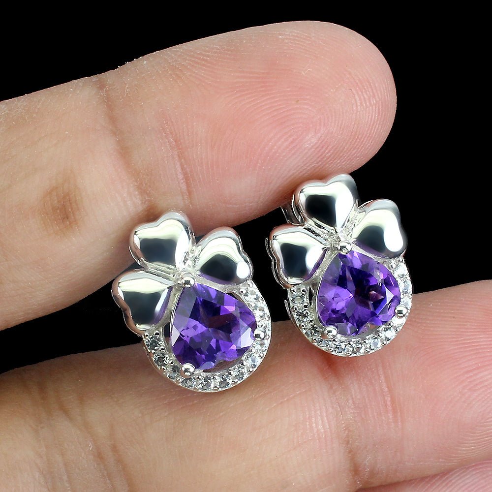 Amethyst Weißtopas Kleeblatt Ohrringe