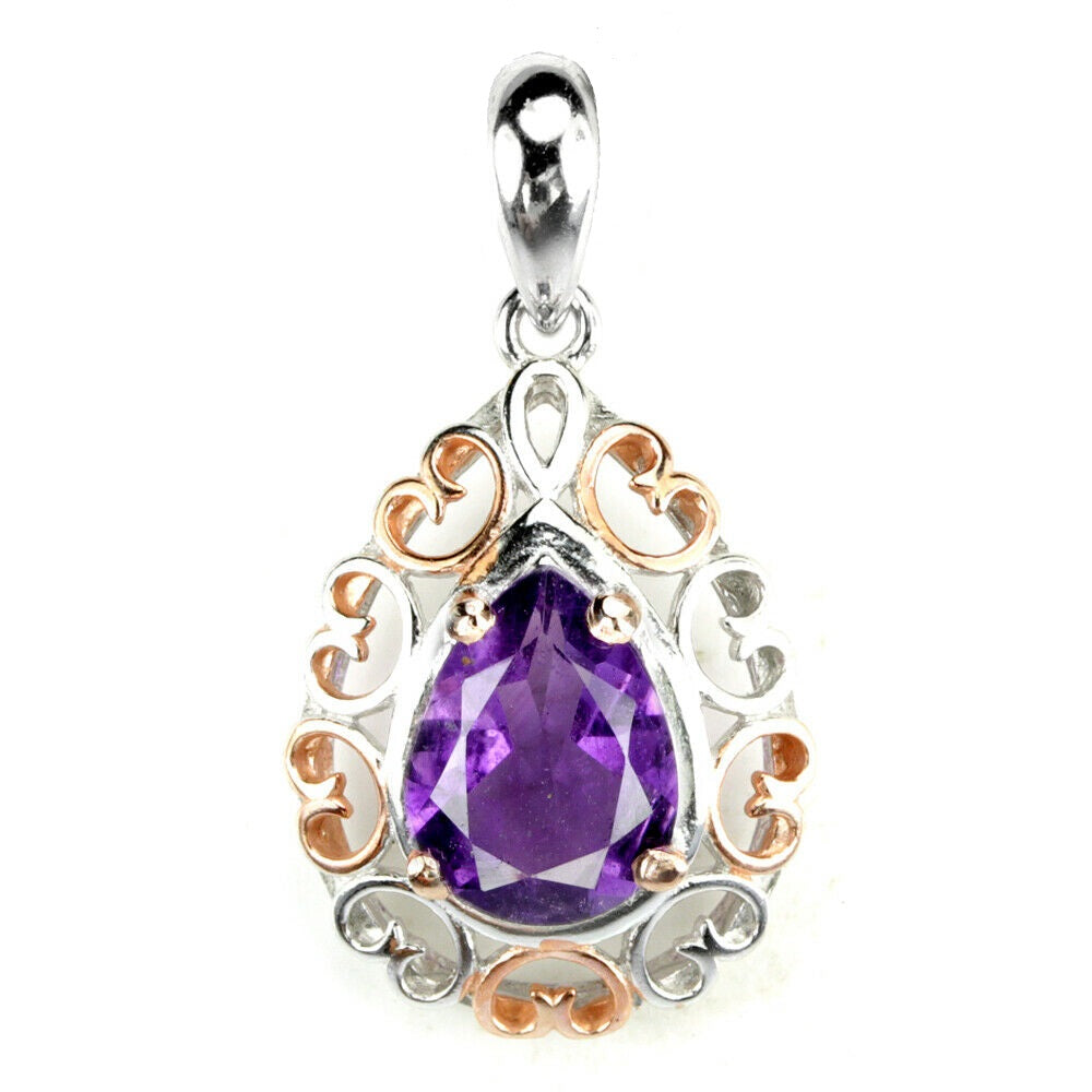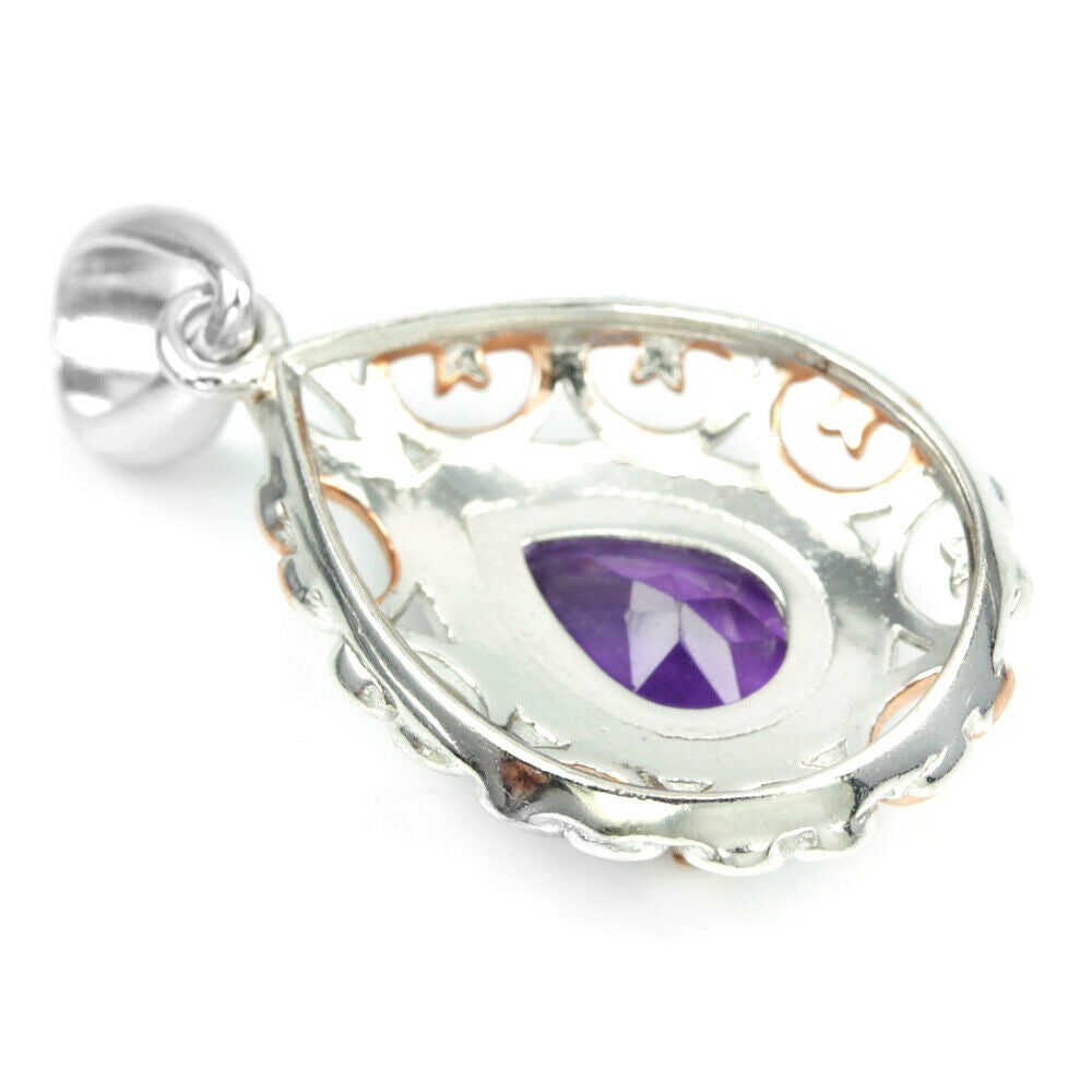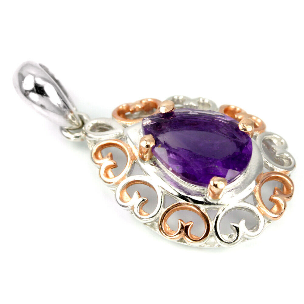 Süßer Anhänger mit einem tropfenförmigen Amethyst gefasst in 925 Sterlingsilber 585 weiß- und rosévergoldet
