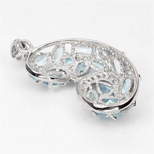 Anhänger mit 16 Blautopasen in der Farbe Sky Blue & weißen Cubic Zirconia gefasst in massivem 925 Sterlingsilber 585 weißvergoldet