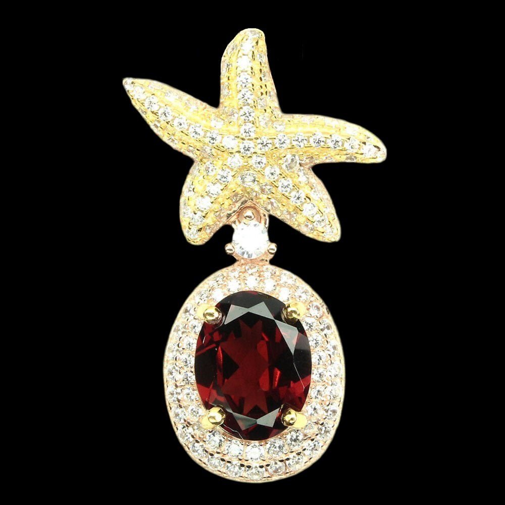 Entzückender Seestern-Anhänger mit einem Granat & weißen Cubic Zirconia gefasst in 925 Sterlingsilber 585 rosé- und gelbvergoldet