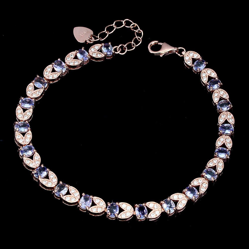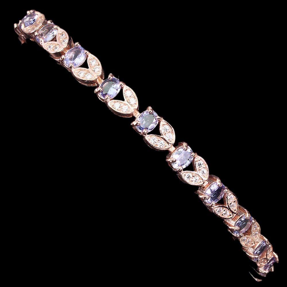 Süßes Armband mit kleinen Blumen (Tulpen?) besetzt mit 20 Tansaniten & weißen Cubic Zirconia gefasst in 925 Sterlingsilber 585 rosévergoldet