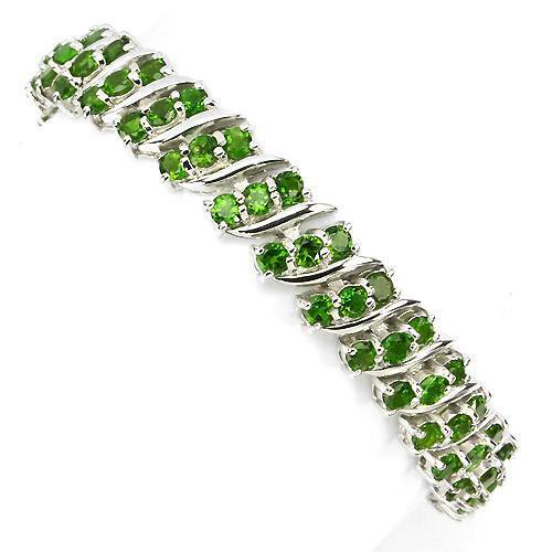 Äußerst wertiges Armband mit dreireihig gesetzten russischen Diopsiden gefasst in 925 Sterlingsilber 585 weißvergoldet