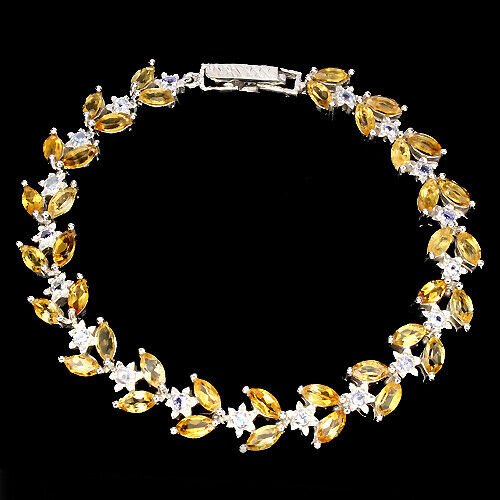 Entzückendes Armband mit 38 Citrinen und 19 Tansaniten gefasst in 925 Sterlingsilber 585 weißvergoldet