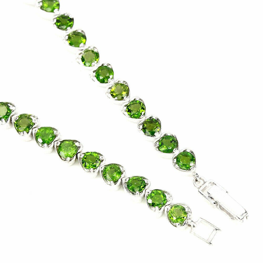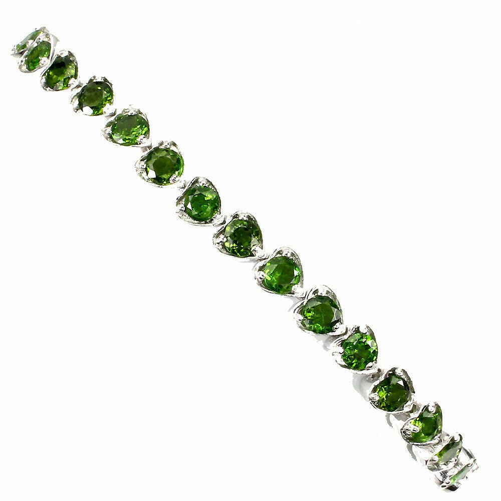 Bezauberndes Herzchen-Armband mit 31 russischen Diopsiden gefasst in 925 Sterlingsilber 585 weißvergoldet