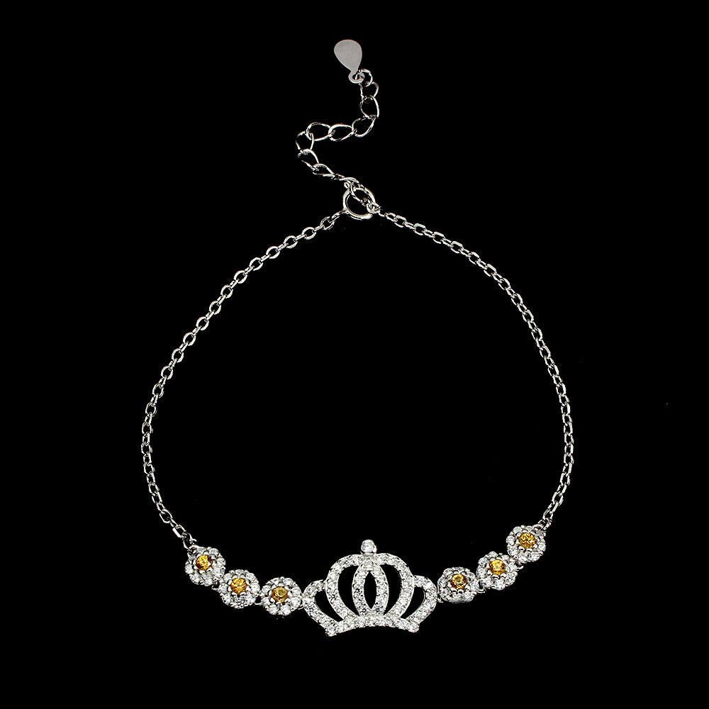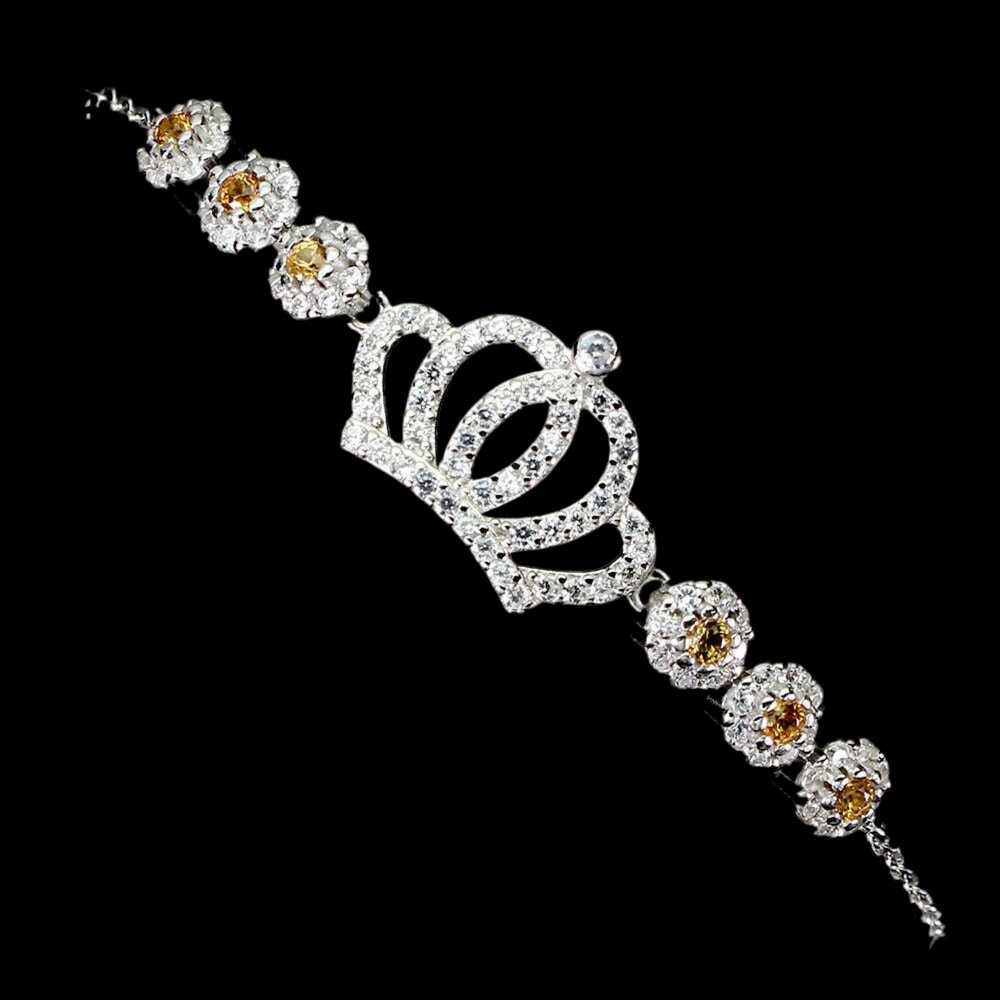 Süßes Krönchen-Armband mit 6 gelben Saphiren & weißen Cubic Zirconia gefasst in 925 Sterlingsilber 585 weißvergoldet