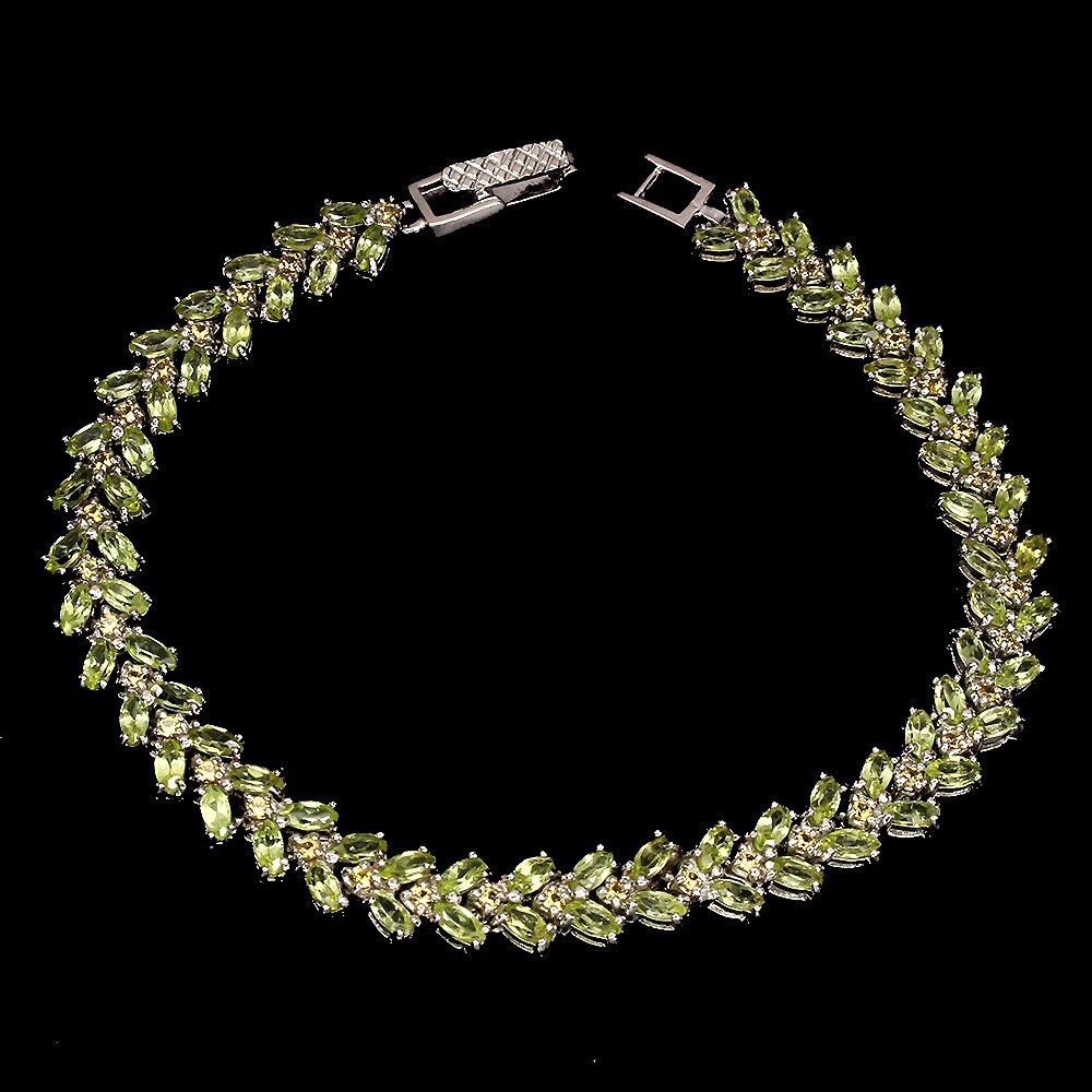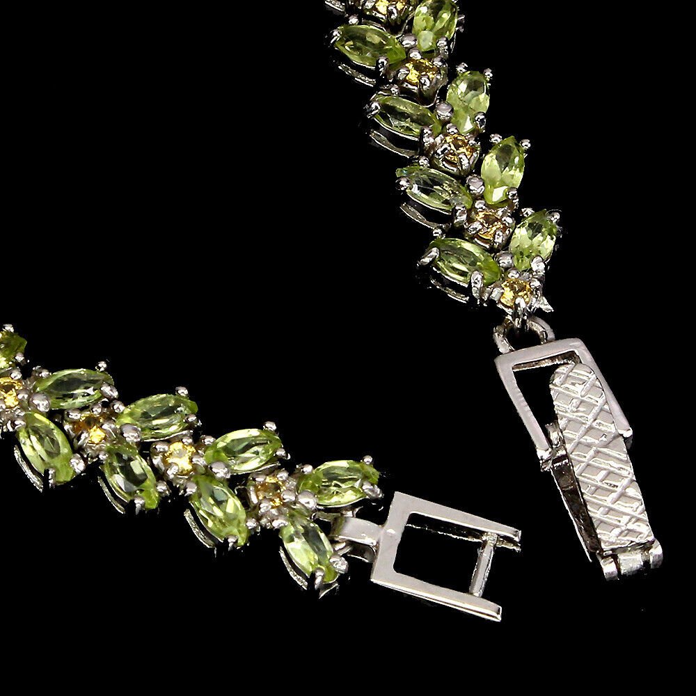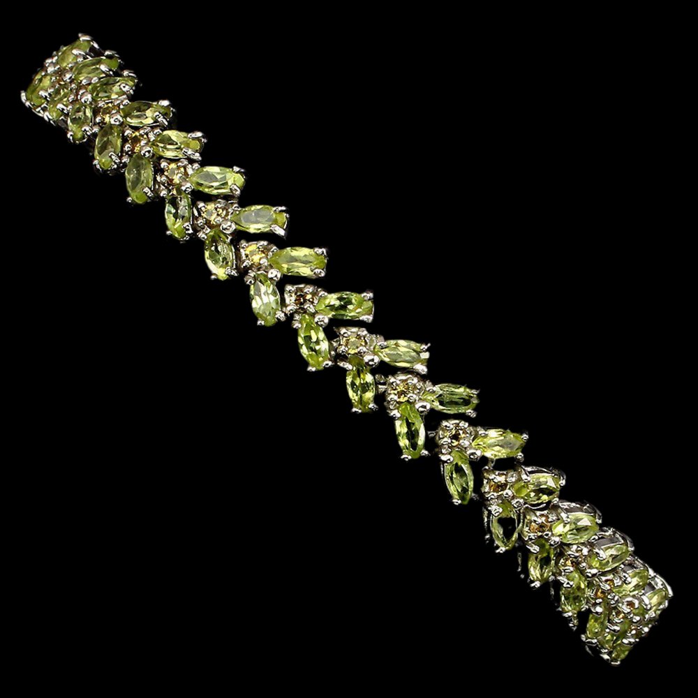 Luxuriöses Armband mit 76 Peridoten und 38 gelben Saphiren gefasst in 925 Sterlingsilber 585 weißvergoldet