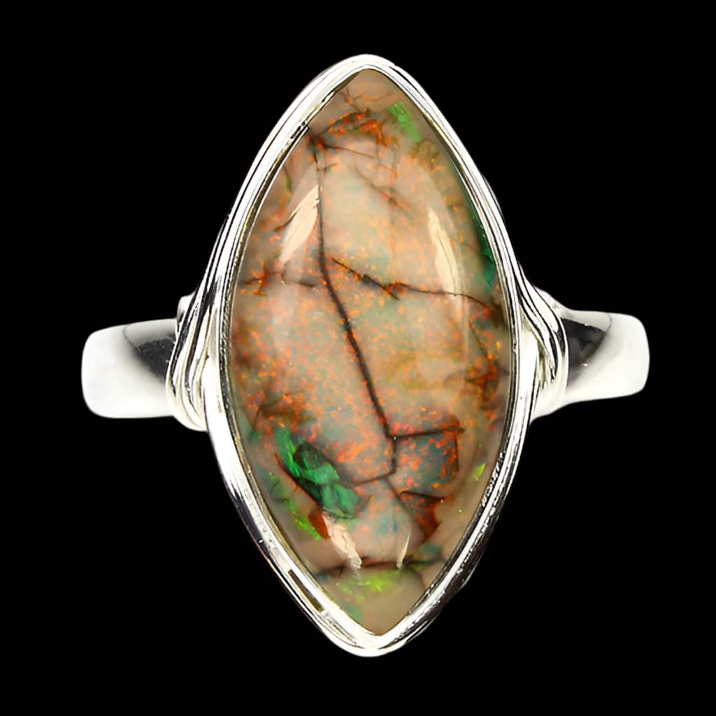 Handgearbeiteter Ring mit einem großen australischen Boulder-Opal gefasst in 925 Sterlingsilber