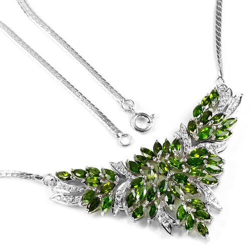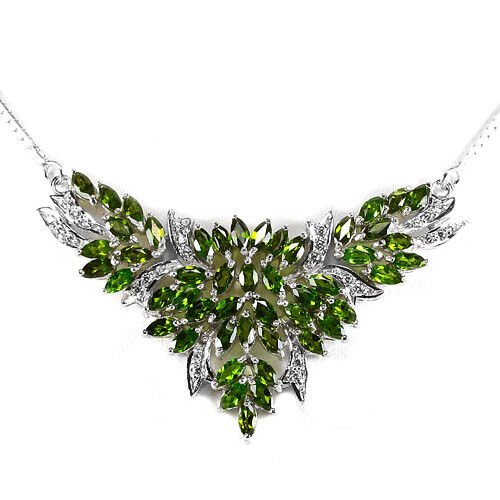 Edles Collier mit 49 russischen Diopsiden & weißen Cubic Zirconia gefasst in 925 Sterlingsilber 585 weißvergoldet