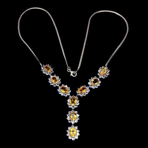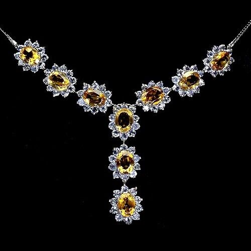 Sehr edles Collier mit 9 Citrinen und 90 Tansaniten gefasst in massivem 925 Sterlingsilber 585 weißvergoldet