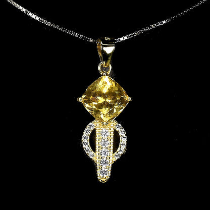 Halskette mit Anhänger mit Goldberyll & weißen Zirkonia gefasst in 925 Sterlingsilber 14 Karat Gelbgold und Weißgold vergoldet