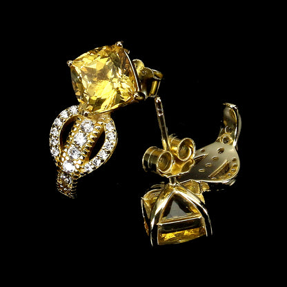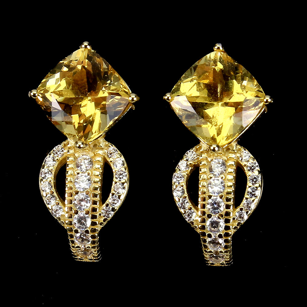 Ohrringe mit Goldberyllen & weißen Zirkonia gefasst in 925 Sterlingsilber 14 Karat Gelbgold vergoldet