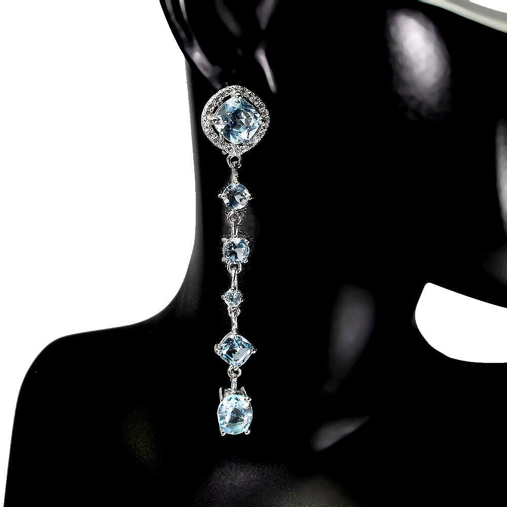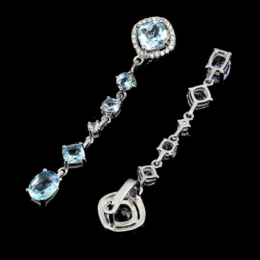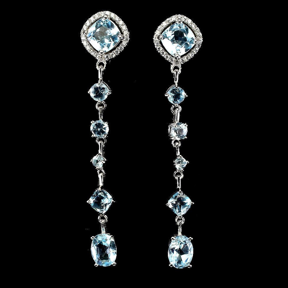 Ohrringe mit insgesamt 12 Blautopasen in der Farbe Sky Blue & weißen Cubic Zirconia gefasst in 925 Sterlingsilber 585 weißvergoldet