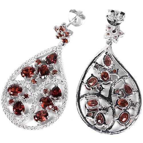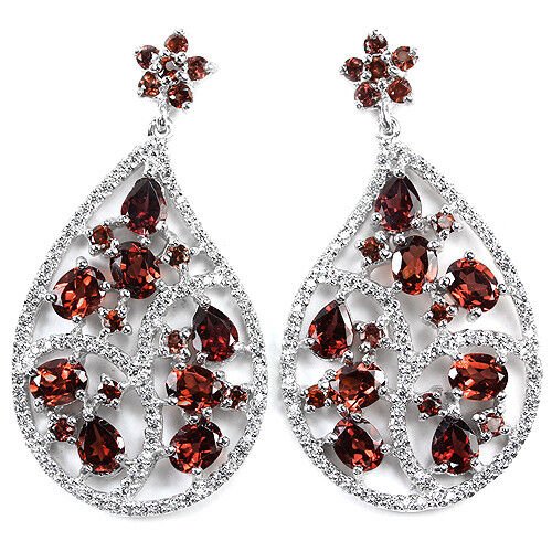 Wow-Ohrringe mit insgesamt 42 Granatsteinen & weißen Cubic Zirconia gefasst in 925 Sterlingsilber 585 weißvergoldet