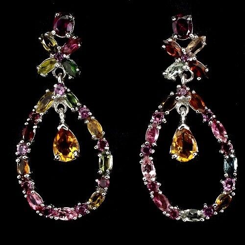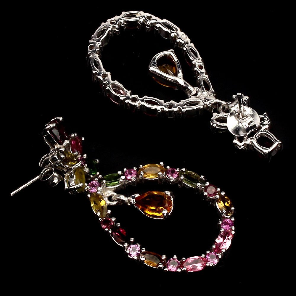 Sehr feminine Ohrringe mit Turmalinen in verschiedenen natürlichen Farben, Citrinen und Rhodoliten (insgesamt 50 Edelsteine) gefasst in 925 Sterlingsilber 585 weißvergoldet