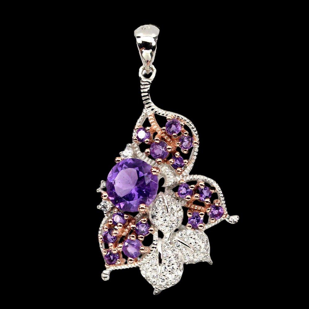 Sehr schöner Anhänger mit 15 Amethysten & weißen Cubic Zirconia gefasst in 925 Sterlingsilber weiß- und rosévergoldet