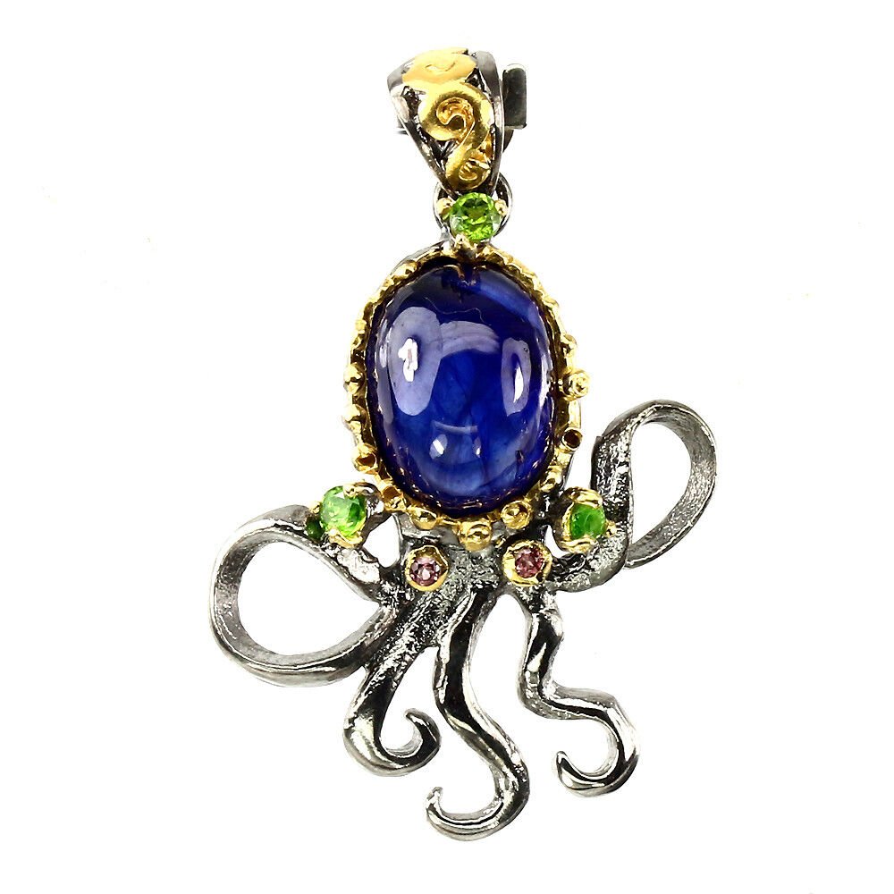 Saphir Chromdiopsid Rhodolit Oktopus Anhänger